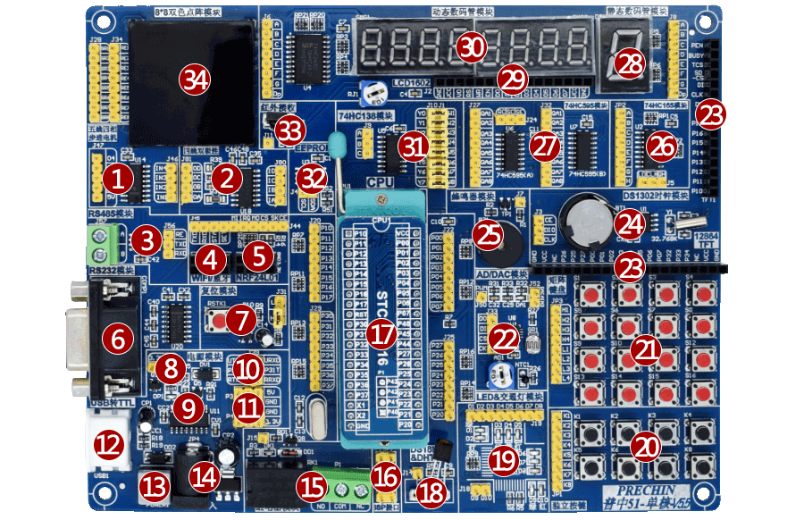 產(chǎn)品描述:模塊多,少數(shù)不能同時(shí)用、功能強(qiáng),帶51仿真器,支持51/AVR/STM32、GUI/UCOS操作系統(tǒng)開發(fā) ...