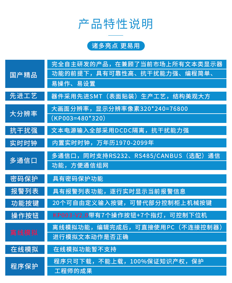 產(chǎn)品描述:產(chǎn)品特點(diǎn) ● 完全自主研發(fā)的國(guó)產(chǎn)精品,在兼顧了當(dāng)前市場(chǎng)上所有文本類顯示器功能的前提下,具有可靠性高、抗干擾能力強(qiáng)、編程簡(jiǎn)單、易操作、易設(shè)置 ● 器件采用先進(jìn)SMT(表面貼裝...