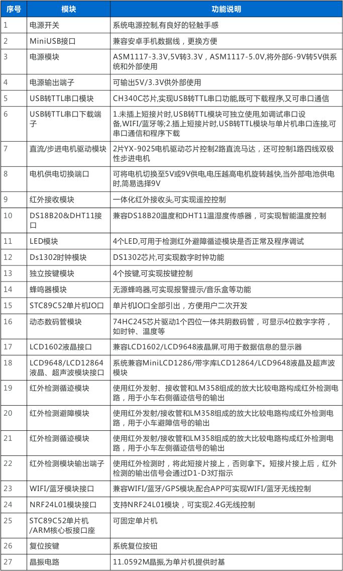 產(chǎn)品描述:既是51開發(fā)板又是智能小車,模塊多,集成度高,無需額外接線即可玩轉(zhuǎn)小車。在玩的過程中輕松學(xué)會51單片機(jī)開發(fā)。非常適合學(xué)生/教師...